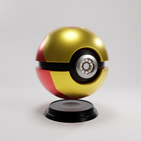 A one-of-a-kind Ironman Pokéball by Whale 3D Studio, blending Marvel and Pokémon.
