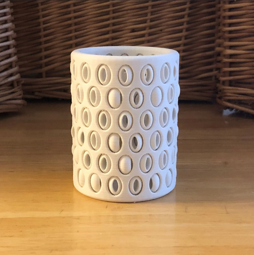 This is more than just a lamp shade—it has embedded dimmer beads that rotate around the base, allowing the user to adjust brightness manually. It’s a satisfying tactile experience and an impressive showcase of creative 3D printing.