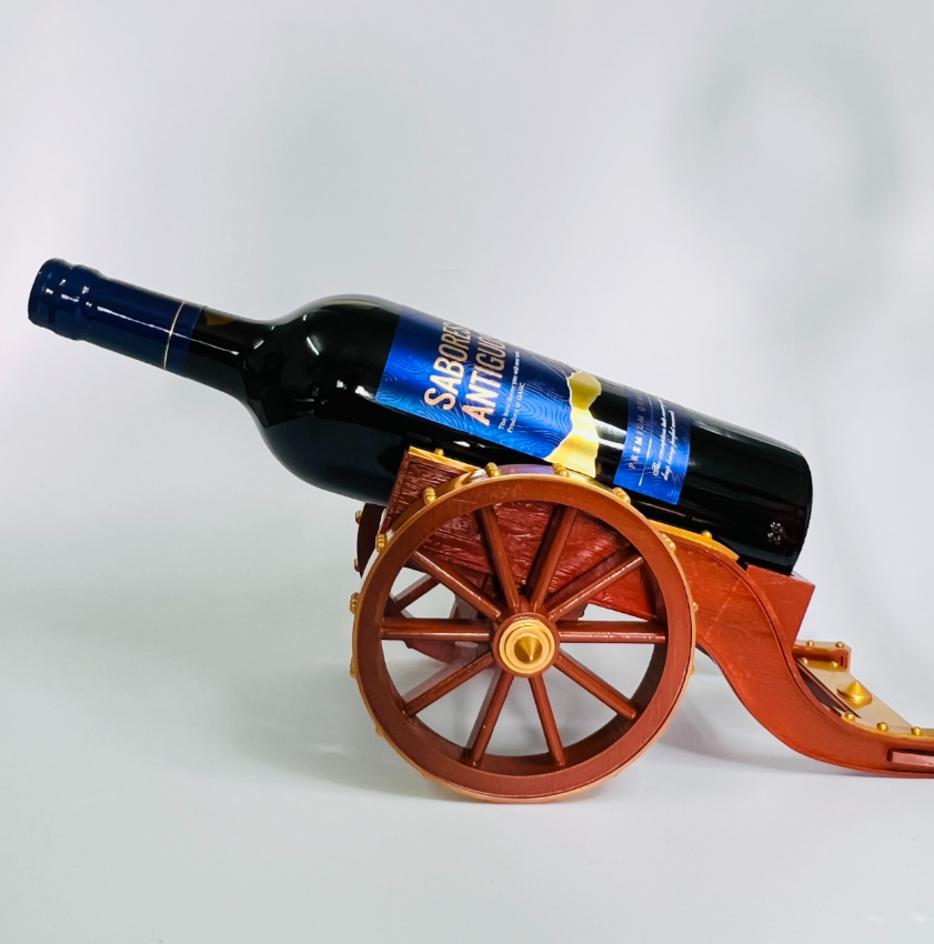 This is a perfect blend of craftsmanship and humor. A wine bottle cradled in a cannon-style display? It’s a conversation piece, a practical kitchen accessory, and a fun gift for wine-loving dads.
