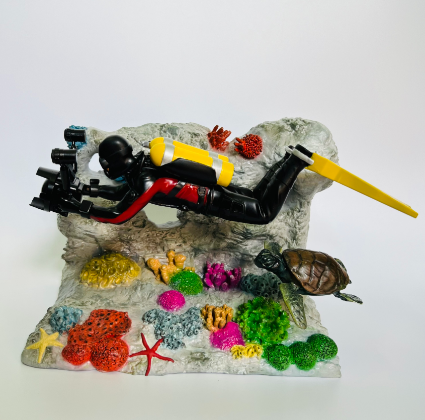 If your dad loves the ocean, scuba diving, or marine life, this colorful diorama is a must-print. It’s a beautifully detailed display piece featuring a diver surrounded by coral reefs, sea creatures, and vibrant colors.
