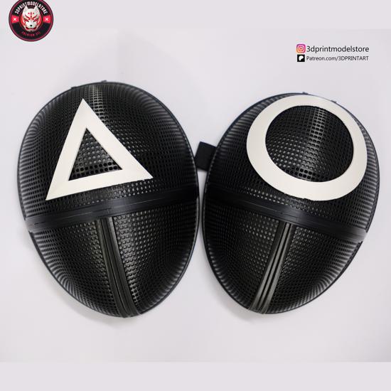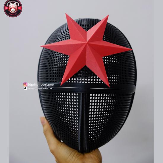 A variation of the Squid Game mask, this version features a red star emblem, distinguishing it as the mask worn by higher-ranked Squid Game guards. This 3D printed Squid Game mask is sleek, intimidating, and easy to print.