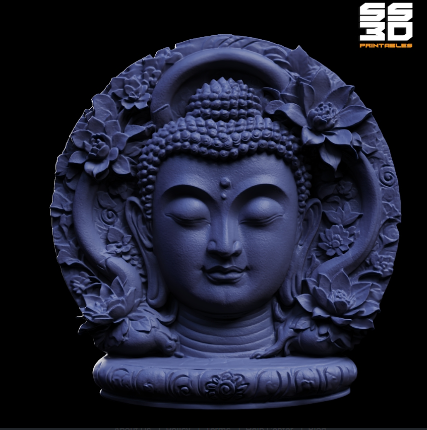 A peaceful and detailed Buddha face surrounded by flowers and ornaments. This 3D printed wall sculpture adds a calm, spiritual vibe to any space. Perfect for homes, meditation rooms, or yoga studios. You can print it in PLA, resin, or even carve it using CNC.