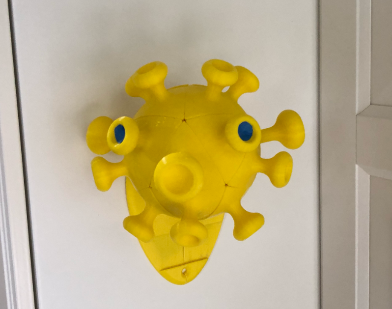 A little humor goes a long way. This PPE holder takes the shape of a cartoonish virus—bright, weird, and impossible to ignore. Originally designed to hold face masks, it doubles as a sunglasses rack or just a quirky wall hook.