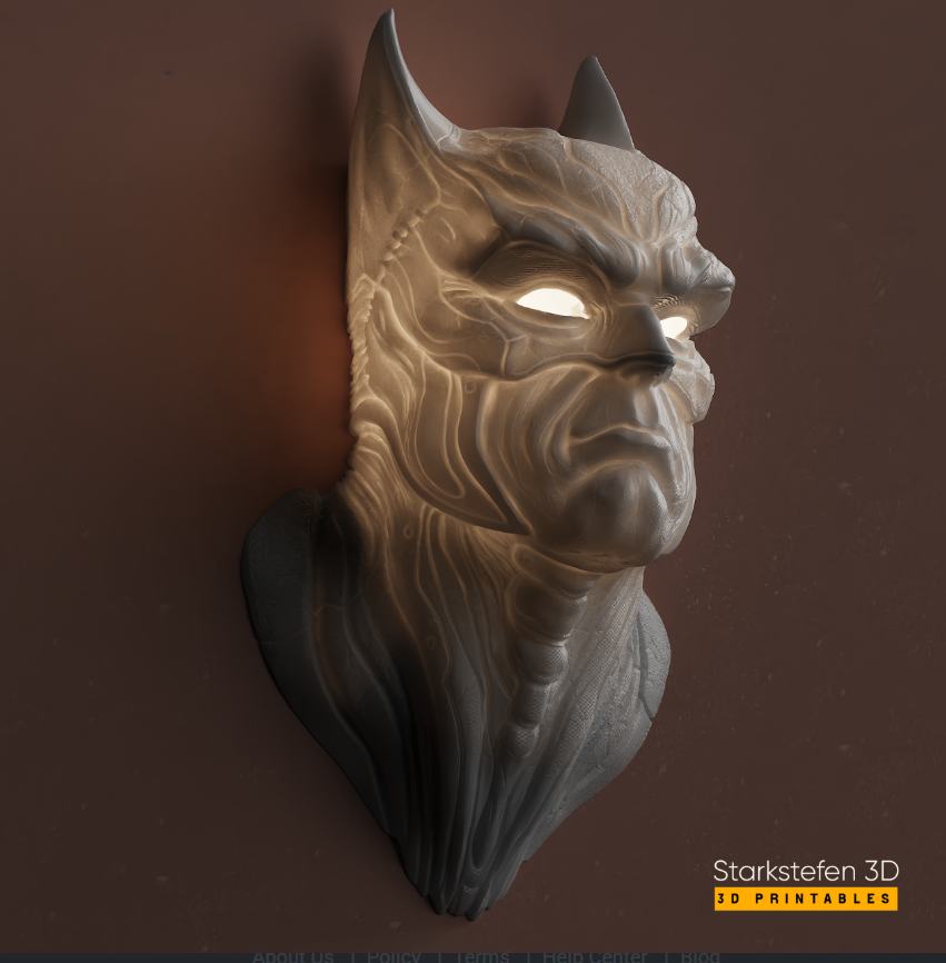 This one’s not just wall art—it’s functional decor. This 3D printer wall art model lets you create your very own Batman-themed wall lamp. The design is hollowed out to let light shine through the eyes and inner contours, giving it a dramatic glow.