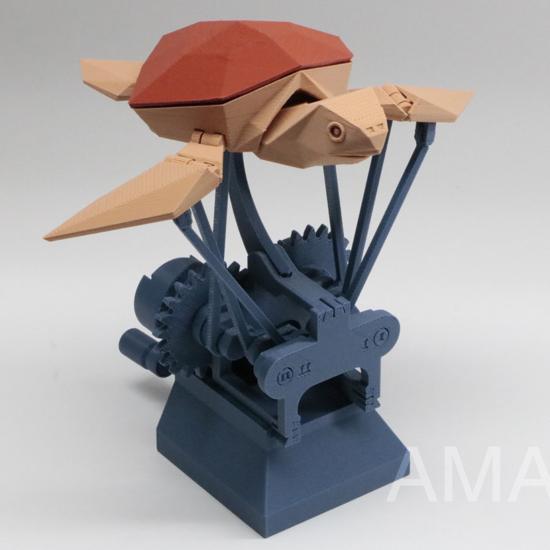 Rounding out our list is the serene Flying Sea Turtle by Amao Chan. This automata model captures the beauty and grace of a sea turtle gliding through the ocean. The design features articulated flippers that move up and down, creating a realistic swimming motion.
