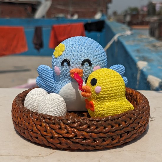 A sweet tribute to the bond between parent and child, this Mama Bird and Baby Chick model is knitted-style cuteness at its finest. With stitched patterns across their rounded bodies and button-like eyes, these characters look like they’ve jumped out of a handmade toy basket.