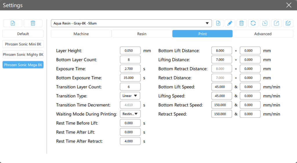 Note: Always cross-check with your material’s official data sheet. For Phrozen resins, use the recommended resin profiles available on the Phrozen website to fine-tune your exposure times based on layer height and pigment density.