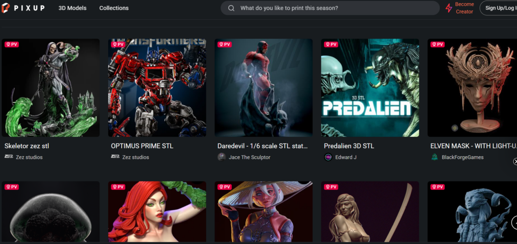 PIXUP is one of the newest platforms on this list, but it’s quickly becoming one of the most advanced and creator-friendly options in the 3D printing space. Built from the ground up for quality, this site takes a more focused, professional approach—especially for resin and LCD printing workflows.