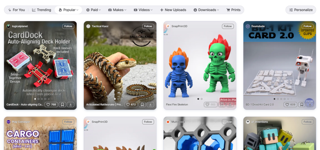 One of its most appealing qualities is that all models are completely free, and many are open-source. The platform encourages users to remix, improve, and re-upload designs, staying true to the collaborative spirit that helped Thingiverse rise in the first place.