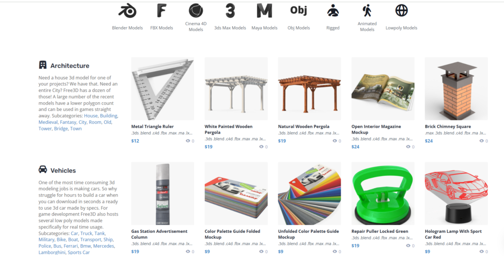 Free3D has a clean, straightforward interface. It’s easy to filter by file type, and you’ll find models for everyday objects, characters, gadgets, and accessories. For those not ready to commit to paid models or subscriptions, it’s a solid place to start.